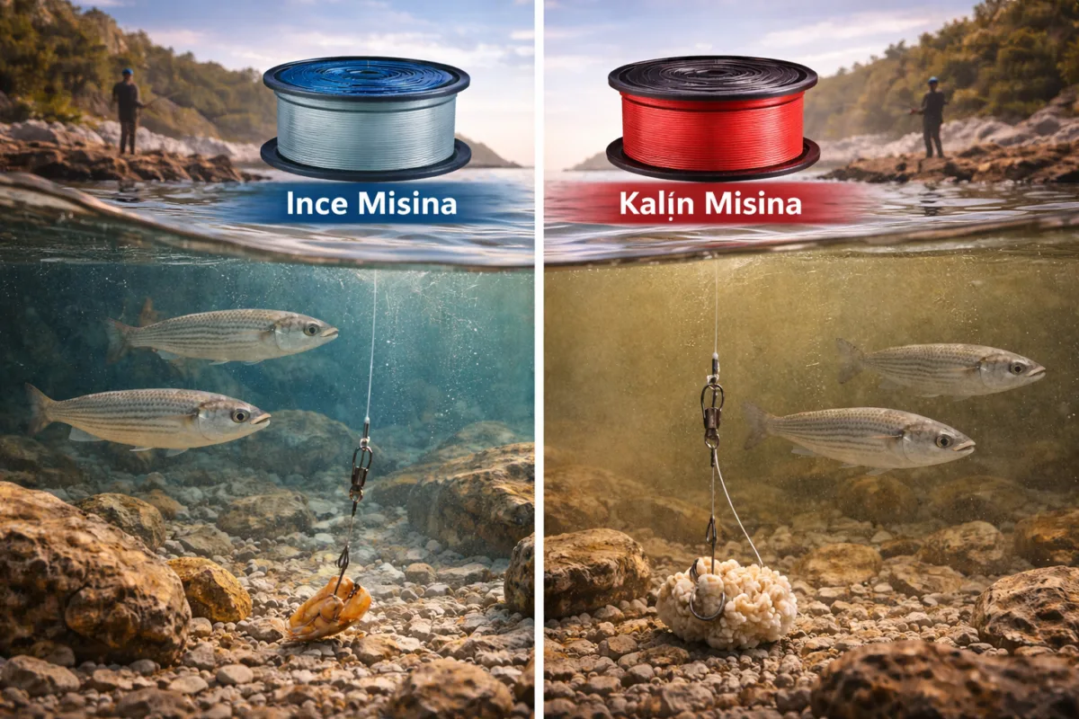 İnce misina, kefal avında daha doğal bir sunum sağlar. Misina suda daha az belli olur, yem daha serbest hareket eder. Bu da kefalin yeme güvenle yaklaşmasını kolaylaştırır.
