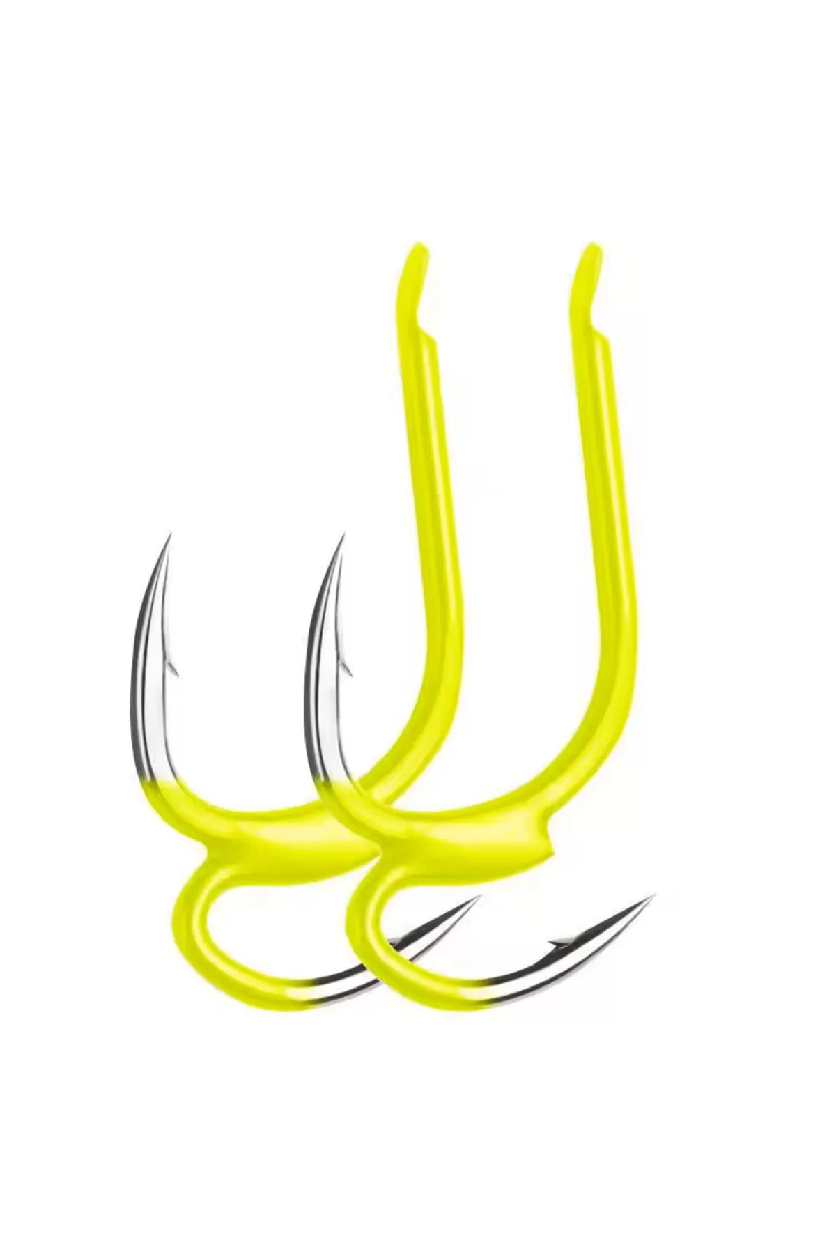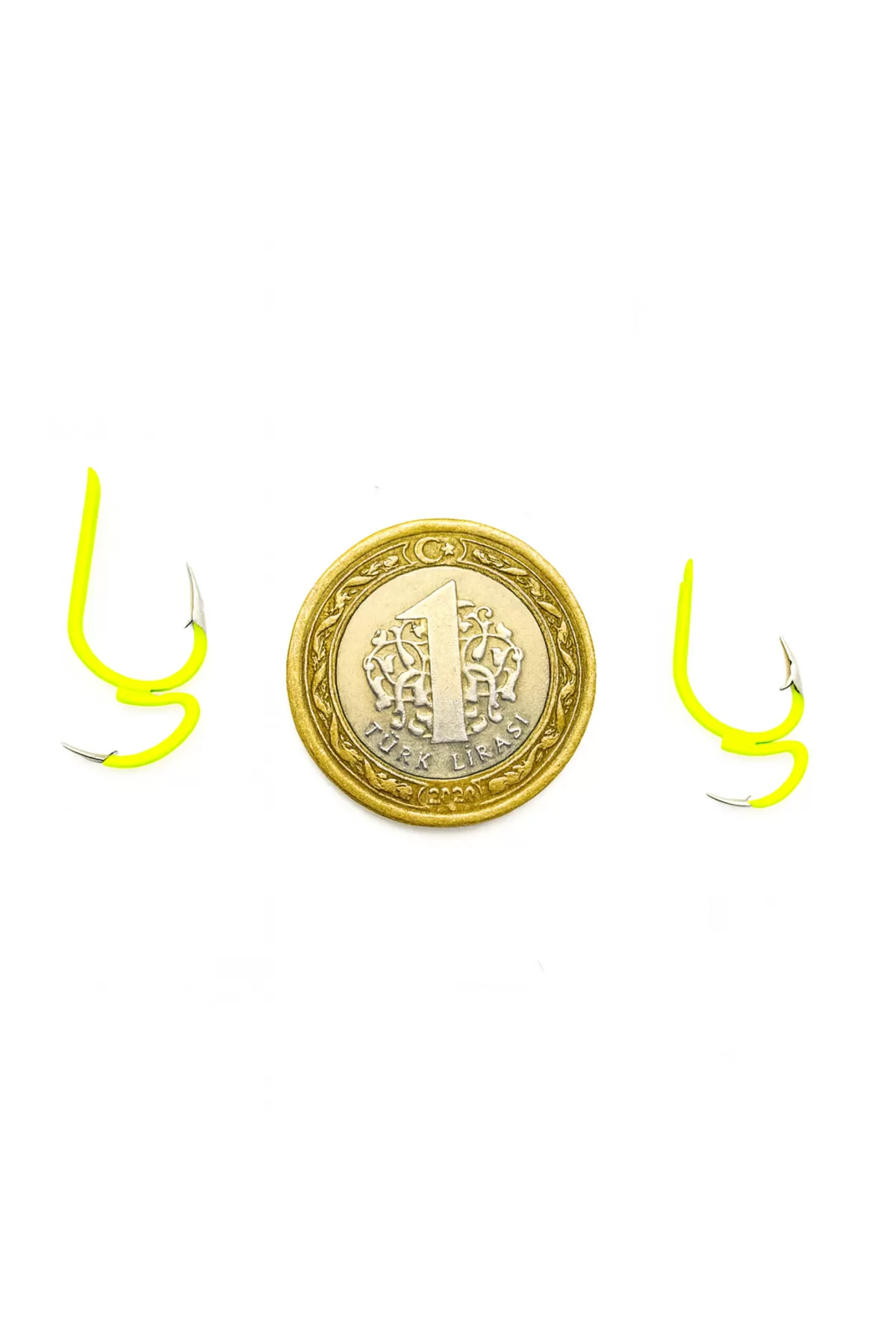 Dayanıklı karbon çelikten üretilen bu çift uçlu özel tasarım olta iğneleri, sarı boyalı gövdesi sayesinde suda yüksek görünürlük sağlar.