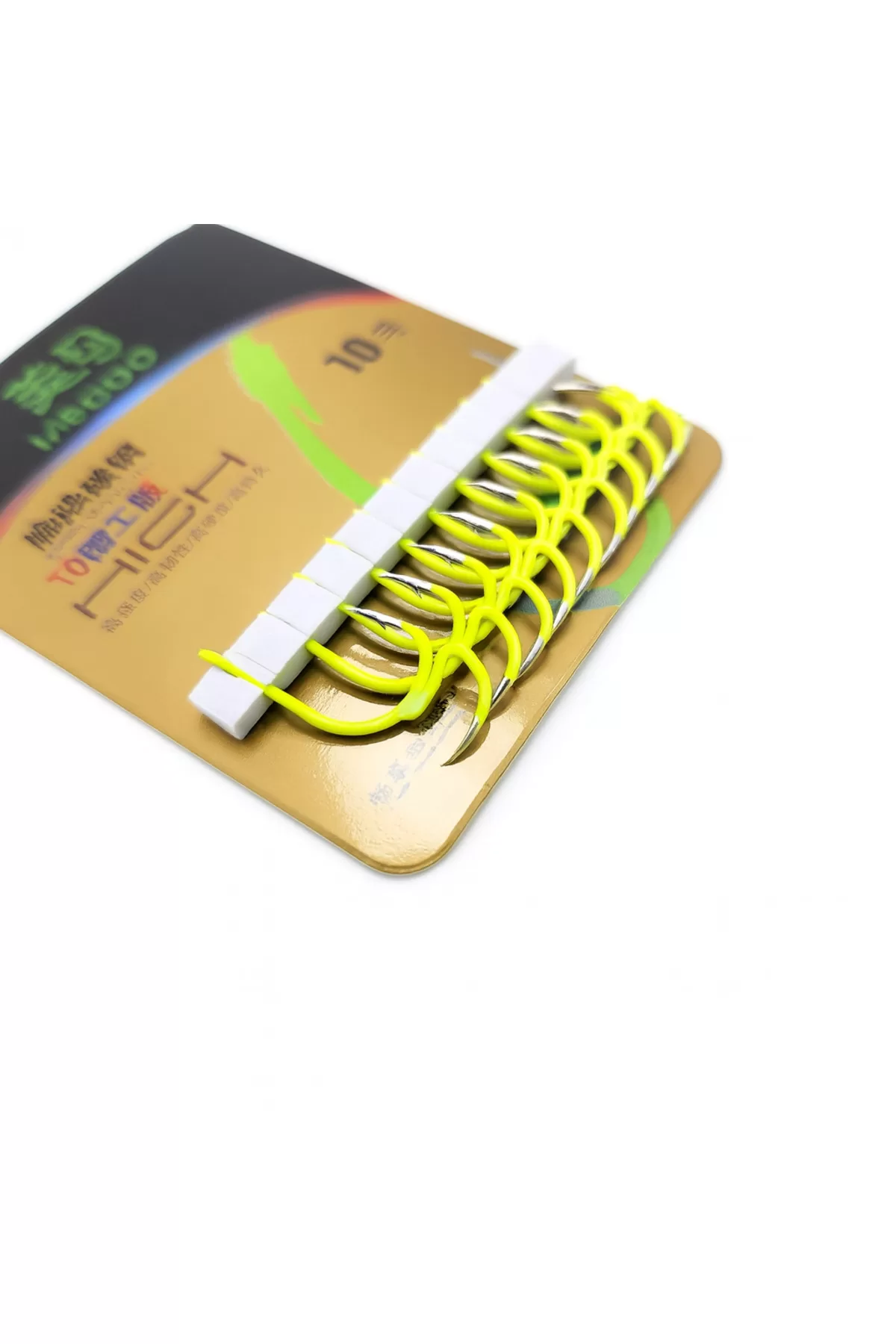 10’lu Sarı Boyalı Çift Uçlu Olta İğnesi – 10 ve 12 Numara Seçenekli
