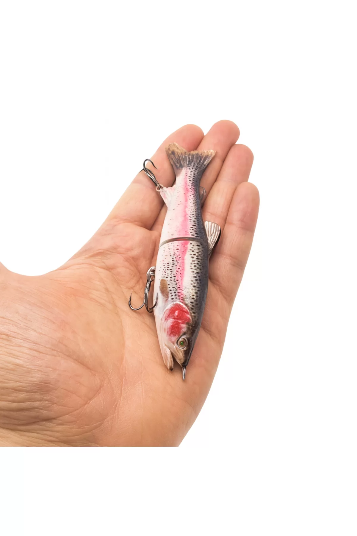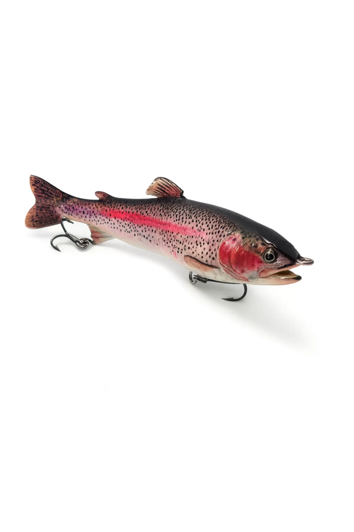 Avcı balıkların büyük ve hareketli yemlere verdiği tepki, özellikle aktif av zamanlarında belirgin şekilde artar. Somon desenli gerçekçi yapay balık, canlı renk geçişleri ve doğal yüzüş karakteriyle suda güçlü bir av silueti oluşturur.